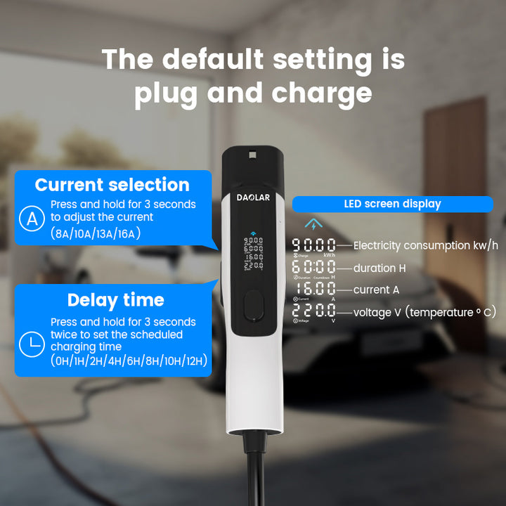 - Ricarica Programmata da 1 a 12 Ore, Intelligente ed Economica: Premi due volte per 3 secondi per impostare una **ricarica programmata** da 1 a 12 ore. Approfitta delle tariffe elettriche fuori punta in Europa; svegliati con l'auto completamente carica, risparmiando tempo e denaro!