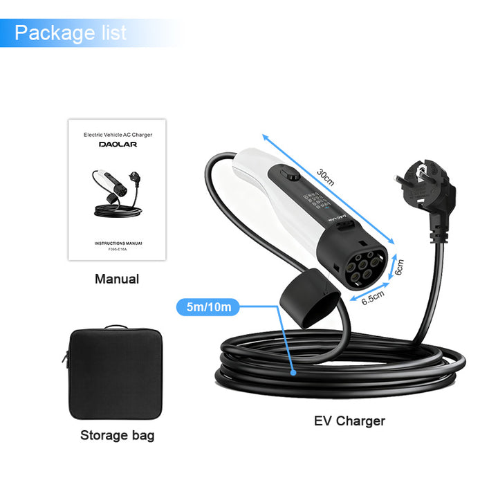 - Dì Addio all'Ingombro! Abbiamo rivoluzionato il design eliminando la pesante scatola di controllo. Il connettore Type 2 pesa solo 0,6 kg, e anche il **cavo di ricarica** da 5 metri pesa in totale solo 1,8 kg. Riponilo facilmente nel bagagliaio o nello zaino – un vero **caricabatterie VE tascabile**!